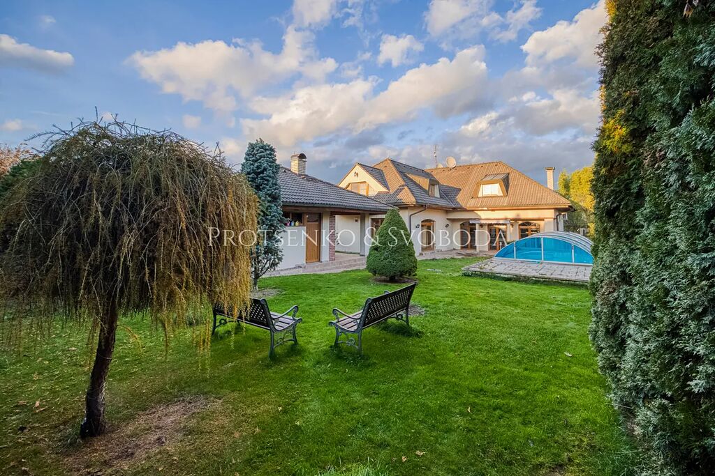 Reprezentativní rodinný dům se zahradou, bazénem a saunou v obci Klínec u Prahy