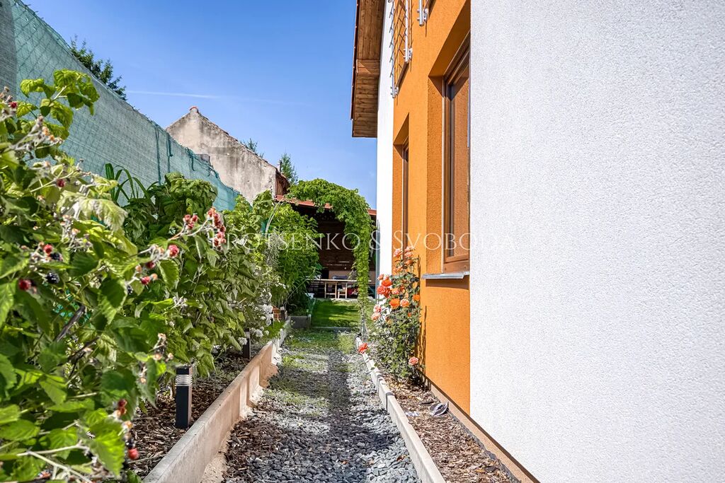 Pozemek o rozloze 537 m² je rozdělen na okrasnou a užitnou část. Součástí je zahrada o ploše 446 m², která poskytuje příjemné soukromí i prostor pro relaxaci. K dispozici je prostorná pergola (24,5 m²) s posezením a menší dílna.