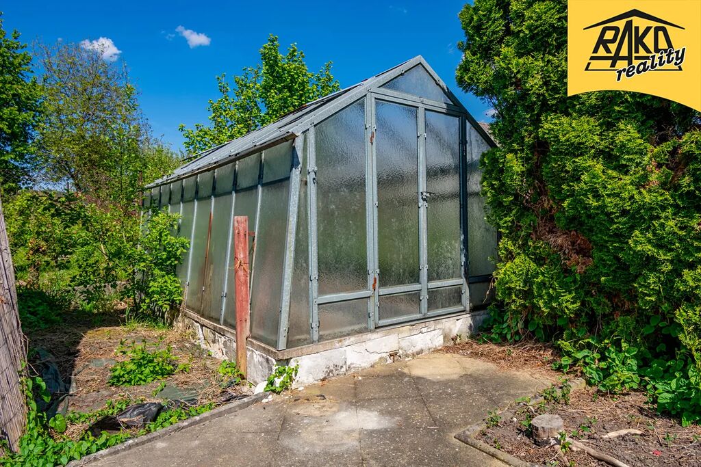 Na pozemku se dále nachází zděná garáž s plechovou střechou, dřevěná kůlna, která je ovšem v havarijním stavu, skleník a bazén.