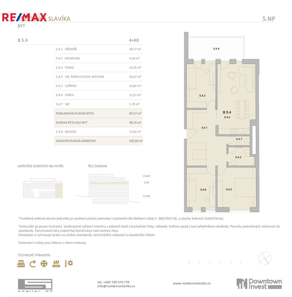 Byt B 5.4. se skládá z předsíně s možností vestavěných skříní , koupelny se sprchovým koutem, toaletou ,
