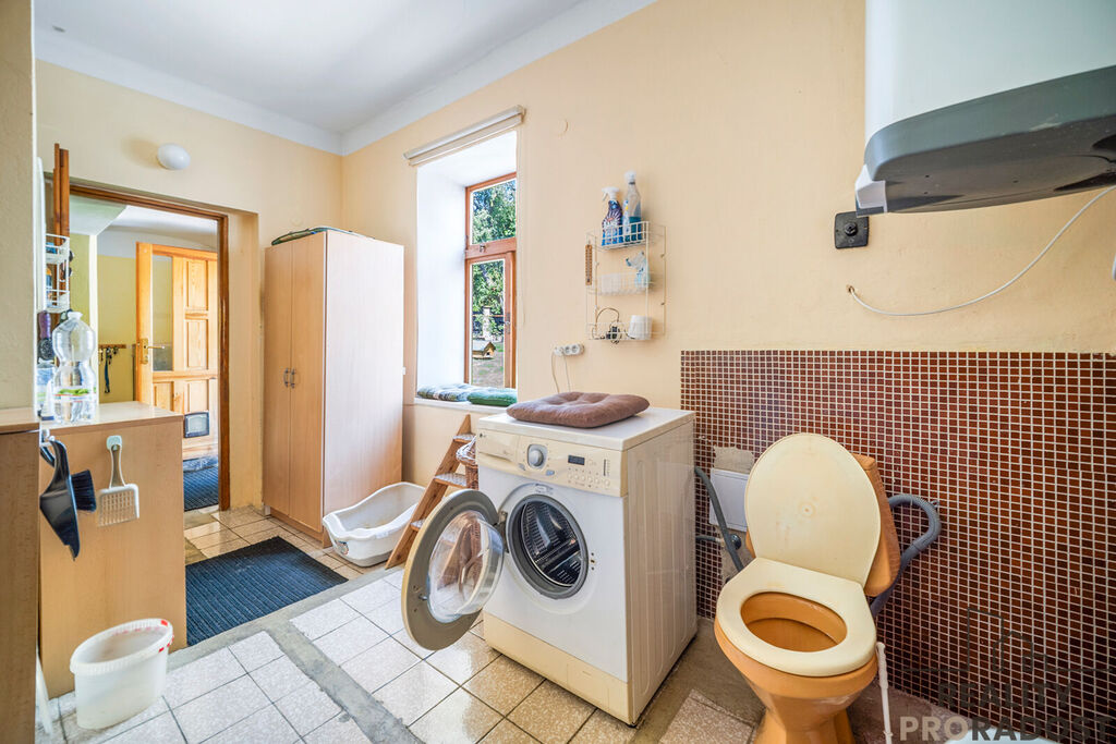 V zadní části chodby je koupelna s wc a schodiště vedoucí do patra.