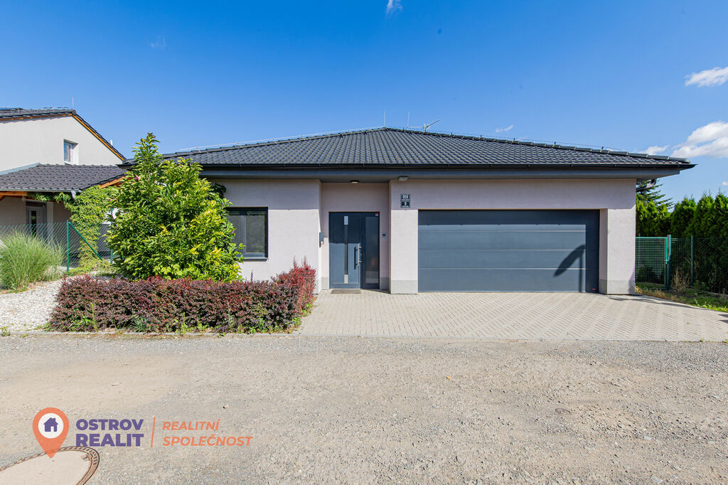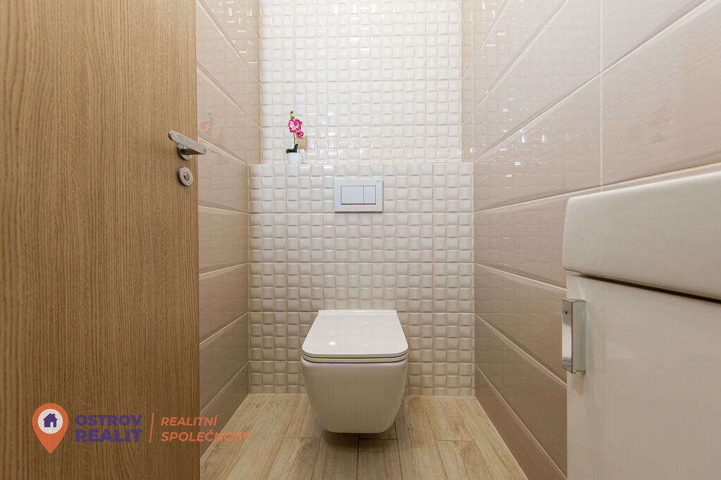 Dům dále nabízí tři pokoje, šatnu, technickou místnost, koupelnu s vanou i sprchovým koutem a samostatné WC – vše uspořádáno tak, aby denní provoz domácnosti byl co nejplynulejší.