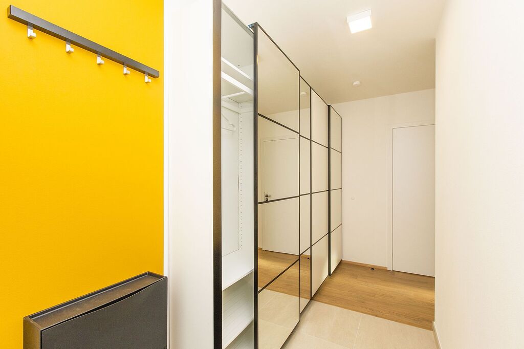 Jedná se o byt 1+kk o výměře 36,41 m2, který se nachází v 3.NP projektu Smilova v sekci D. Byt je efektivně připraven a laděn pro pozitivního uživatele. Součástí nájmu je kuchyňská linka včetně horkovzdušné trouby, varné desky, výkonného odsavače par s odvodem do vzduchotechniky domu a také lednička. Dále je v chodbě k dispozici šatní skříň dlouhá (široká) 3 m a také botník.