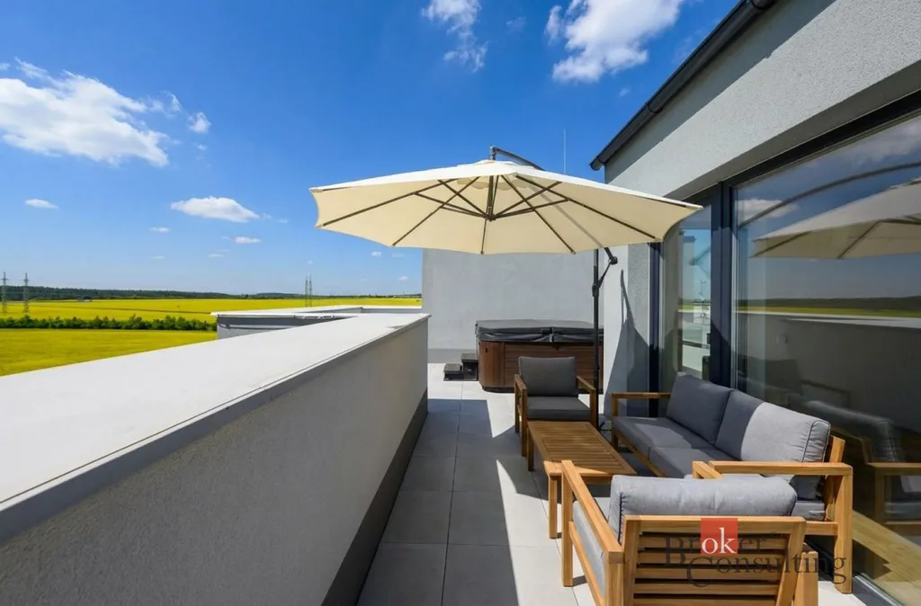Vzhledem ke dvou podlažím, velkým terasám a luxusnímu vybavení bytu se jedná o nemovitost určenou zejména tomu, kdo hledá ojedinělý způsob bydlení, který běžné byty nejsou schopny nabídnout.