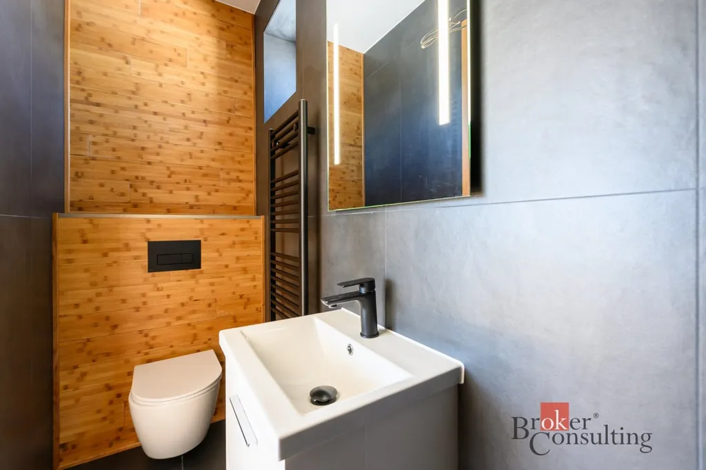 Na prodej zcela nový luxusní dvoupodlažní byt o dispozici 3+kk s dvěma terasami o celkové výměře 131 m2, nacházející se v 6. a 7. NP novostavby s atriem v Plzni na Skvrňanech. Byt byl před několika týdny dokončen, má kvalitní bambusovou podlahu, bambusové obklady na stěnách, klimatizaci a luxusně zařízené dvě koupelny. Chybí jen kuchyňská linka a svítidla, které si vybere již nový vlastník. Je součástí moderního rezidenčního projektu Nové Skvrňany, který klade důraz na kvalitní materiály, funkční dispozice a pohodlné městské bydlení. Součástí bytu jsou dvě terasy s výhledem na Plzeň z nichž na jedné je již instalována vířivka, dvě ložnice s prostory pro šatnu, dvě koupelny se sprchovým koutem i vanou a oddělenou toaletou. K bytu dále náleží prostorná sklepní kóje a k bytu je možné přikoupit i dvě parkovací stání v suterénu domu. Vytápění domu i ohřev vody je řešeno dálkově.