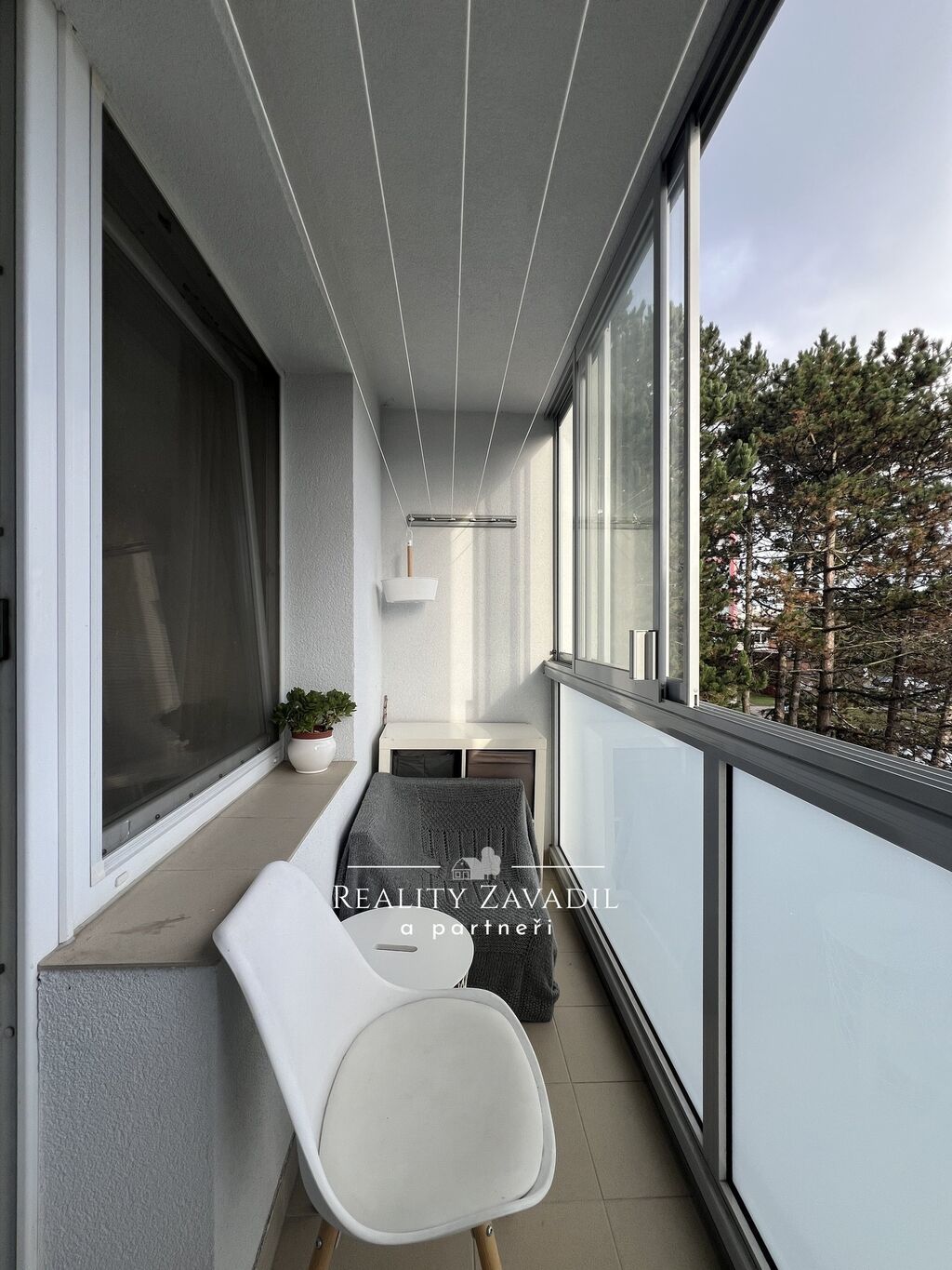 Z kuchyně je vstup do dětského pokoje, který je situovaný na SZ. Z chodby se dostanete do obývacího pokoje vybaveného rohovou sedací soupravou a stolkem pod TV. Obývací pokoj je průchozí do ložnice, ve které se nachází vestavěná šatní skříň a manželská postel. Velkou předností tohoto bytu je prosklená lodžie 4,5m2 s výhledem do zeleně situovaná na JV.