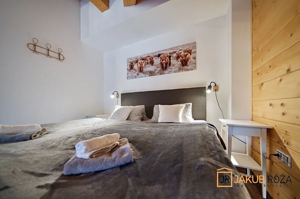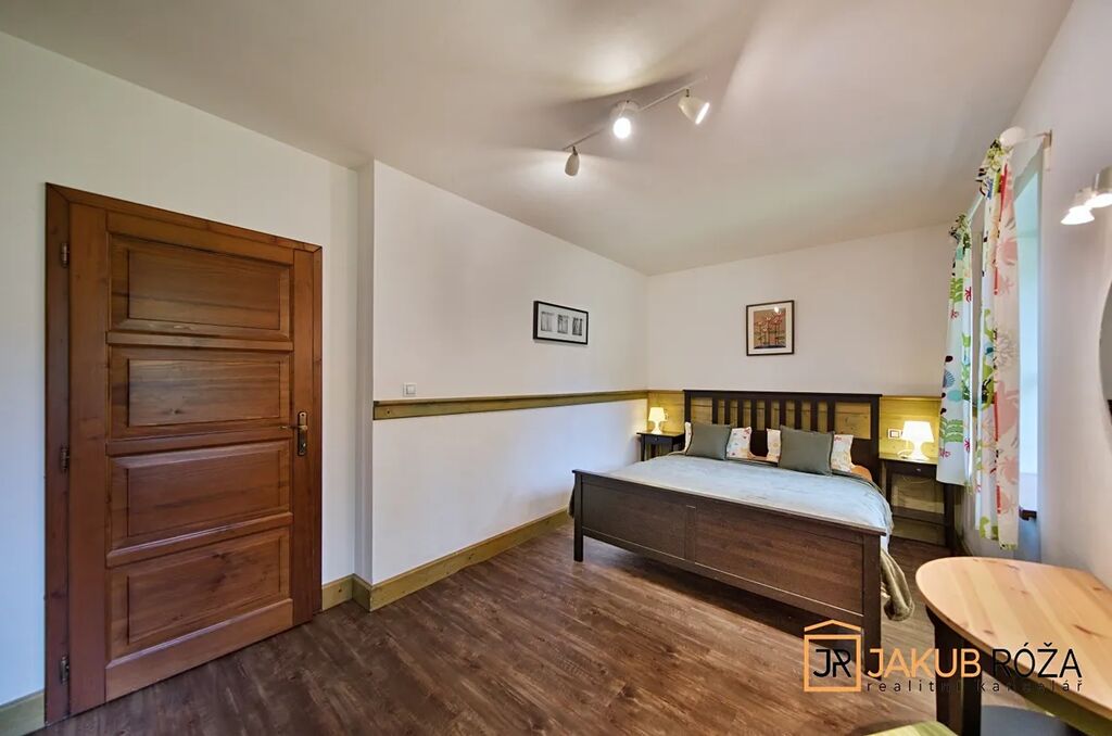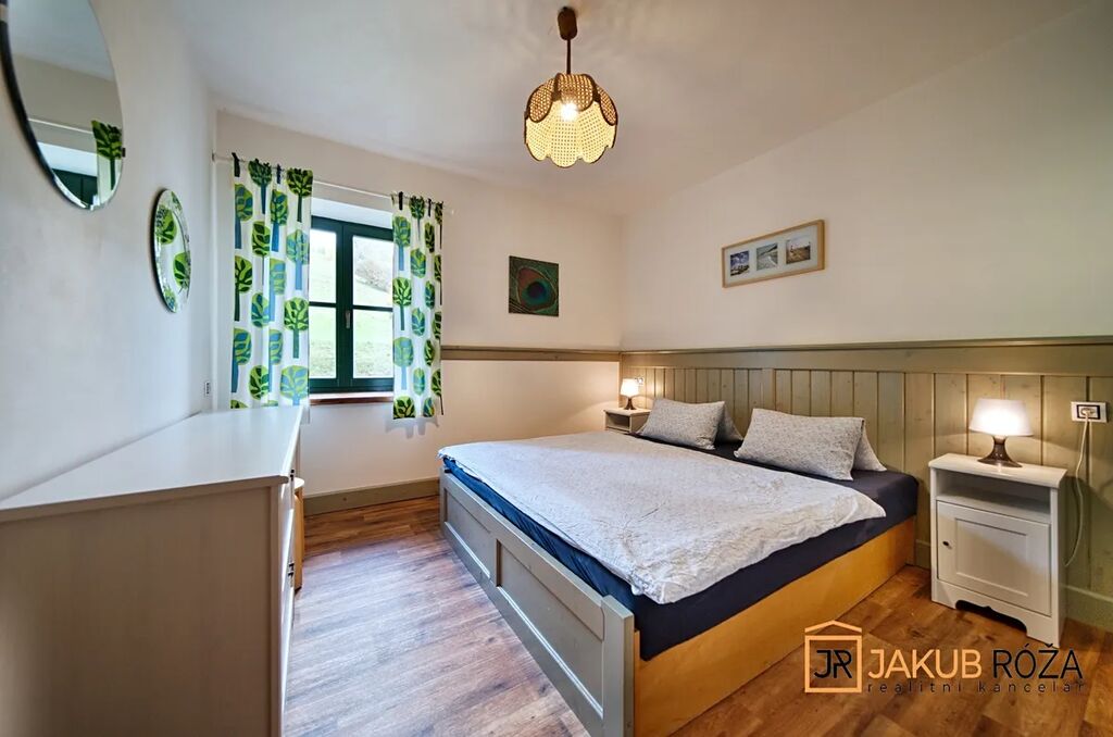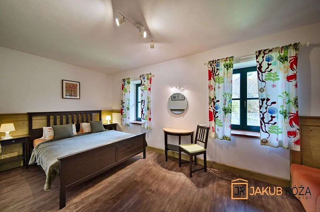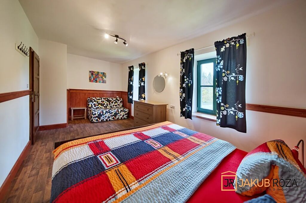 Objekt nově postavený a kolaudovaný v roce 2023 (1NP 2010), napojený na elektřinu, vytápěný tepelným čerpadlem s ohřevem TUV, s vlastní studnou, nabízí ve dvou patrech 483 m2 užitné plochy, zahradu o výměře 3.708 m2, kapacitu až 20 lůžek v pěti samostatných apartmánech, společné prostory a kompletní vybavení v horském stylu.