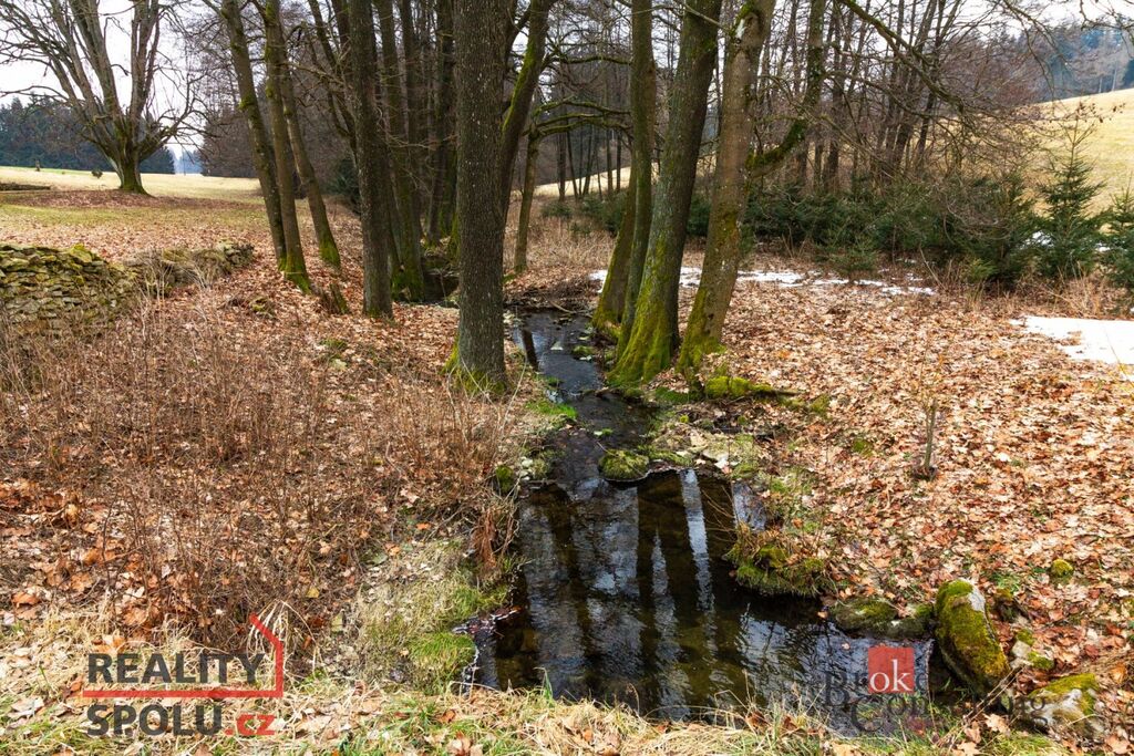 - Pozemek zahrnuje části na obou stranách klidného potoka Suchá.