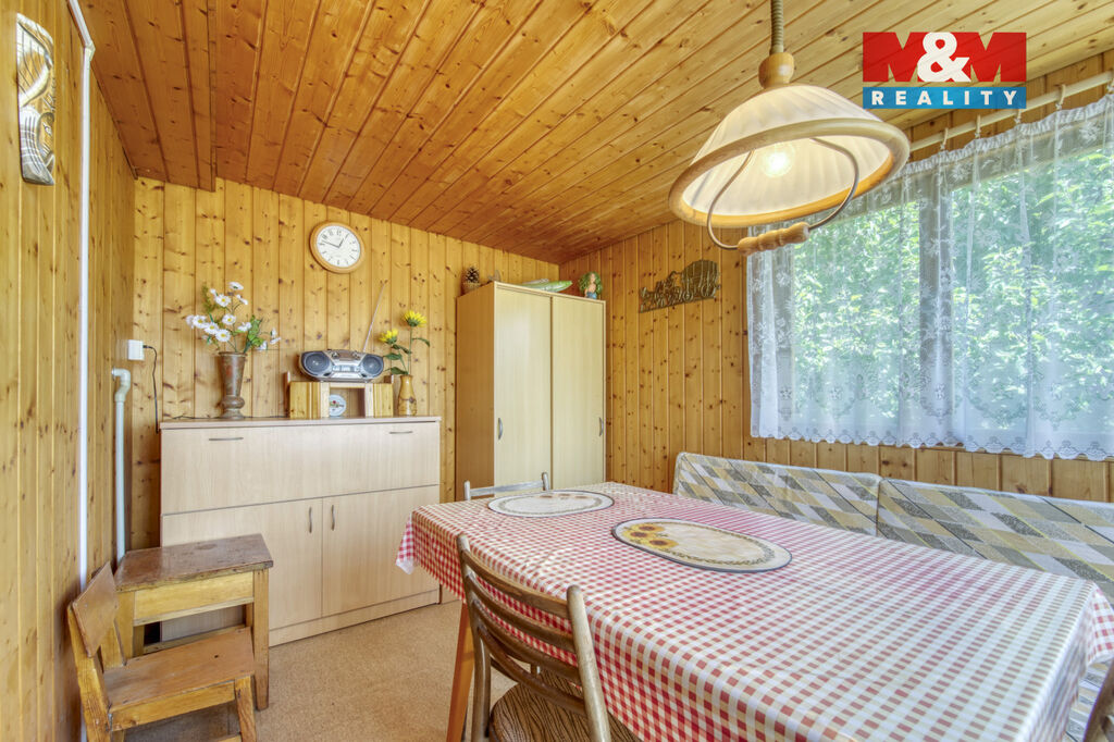 Prodej útulné chaty v malebné části Blovic! Tato samostatně stojící dřevěná chata nabízí ideální útočiště pro milovníky klidné přírody. S užitnou plochou 32,84 m² a celkovým pozemkem o rozloze 300 m² poskytuje dostatek prostoru pro relaxaci i zahradničení. Zahrada je osázena ovocnými stromy a jako hezký detail má i vlastní zděné jezírko. Dále zde najdete dílnu a splachovací wc. Uvnitř chata disponuje 4 místnostmi a prostorným zděným sklepem, což zajišťuje dostatek místa pro rodinné chvíle či pobyt s přáteli. Potěší i menší teráska vhodná pro posezení třeba u kávy. Chata se nachází v klidné části obce, ideální pro odpočinek od městského ruchu. Stav nemovitosti je velmi dobrý, což umožňuje okamžité užívání bez nutnosti dalších investic. Chata je zásobena vodou ze studny, je napojena na elektřinu s vlastním měřičem spotřeby a odpady jsou svedeny do žumpy. Nepropásněte tuto jedinečnou příležitost stát se majitelem kouzelné chaty v krásném prostředí Blovic a domluvte si prohlídku.