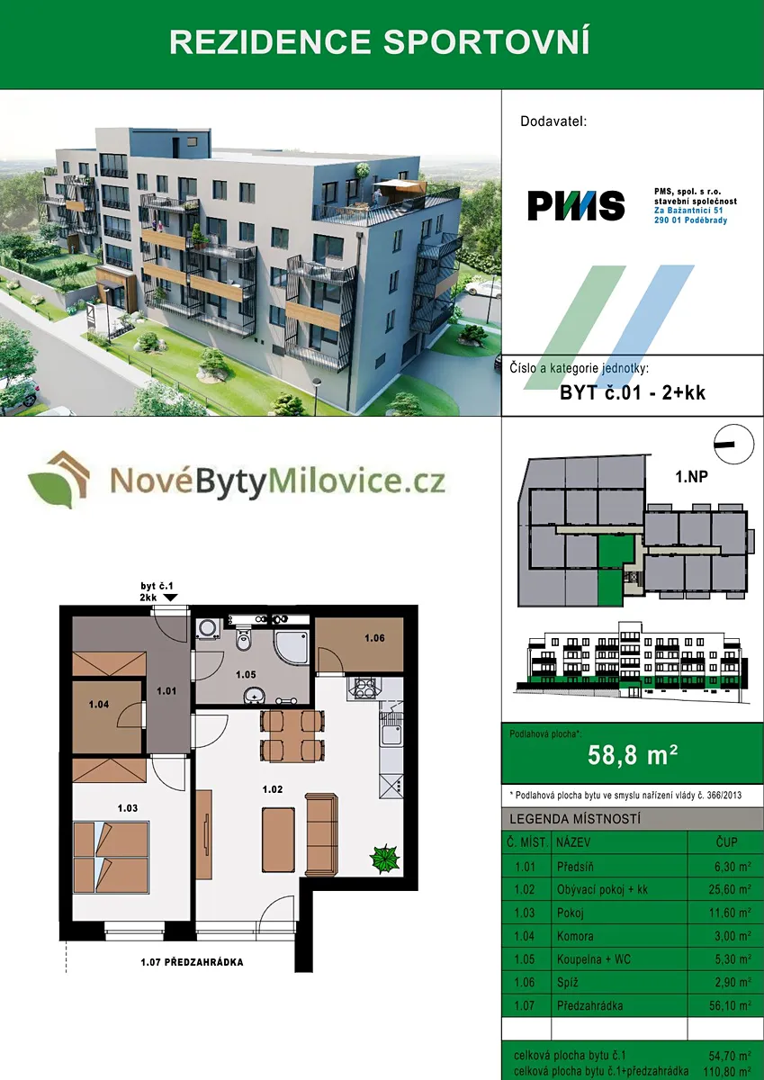 Dovolte mi představit jeden ze 44 krásných bytů v nově vznikajícím projektu Rezidence Sportovní v Milovicích. Výstavba nyní započala a realizuje ji společnost s dlouholetou tradicí a praxí v oboru, firma PMS Poděbrady.