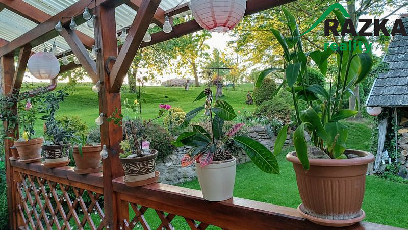 - Příslušenství: zastřešená terasa s posezením, dřevěná kůlna
