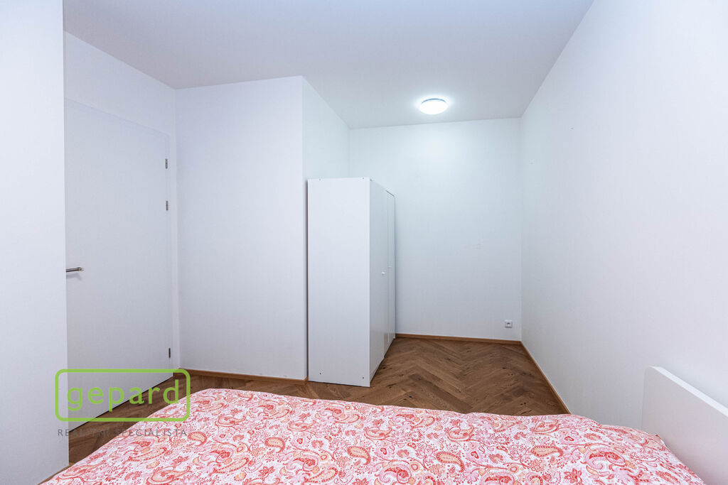 Byt se skládá z obývacího pokoje s kuchyňským koutem o velikosti 21m2 se vstupem na balkon 4,7m2, ložnice s šatnou 12,6m2, chodby, koupelny s vanou společnou s WC a komorou v bytě o velikosti 1,7m2. Okna z obývacího pokoje jsou orientována na jihozápad do upraveného vnitrobloku. K dispozici je kuchyňská linka s myčkou, troubou a varnou deskou.
