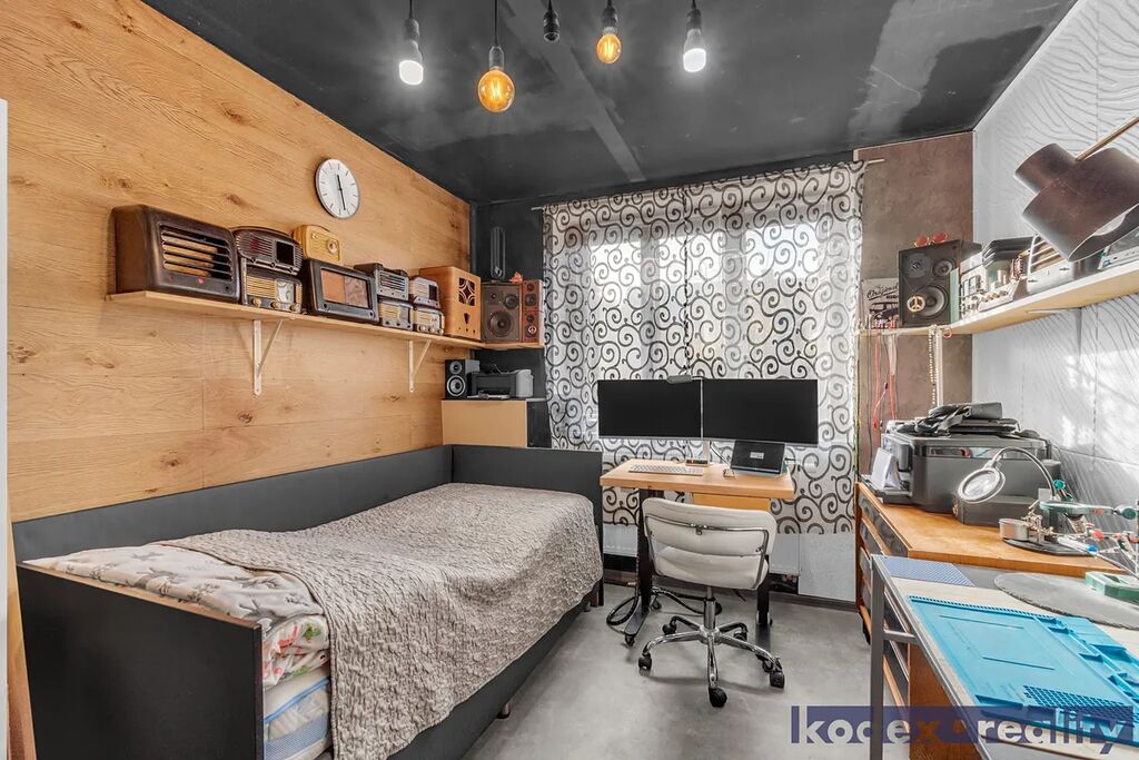 Dispozice: obývací pokoj s kuchyňským koutem, dvě ložnice, pracovna/dětský pokoj, koupelna, samostatné WC.