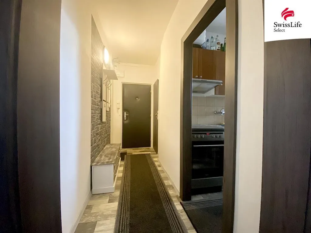 Byt působí útulně a je velmi dobře dispozičně řešen. Dispozice bytu: předsíň, koupelná se sprchovým koutem a toaletou, kuchyň s jídelním koutem, prostorný obývací pokoj, ložnice a šatna. K bytu náleží pěkný balkon orientovaný na jižní stranu, v suterénu domu sklep 8 m2 a sklepní koje 2 m2.