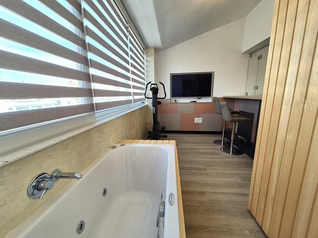 Apartmán byl kompletně zrenovovaný v roce 2020, má moderní vybavení, klimatizaci v každém pokoji a vinylové podlahové krytiny. Náleží k němu 1 parkovací místo na společném parkovišti u budovy. Nemovitost se nachází přibližně 600 m od centra a asi 800 m od moře.