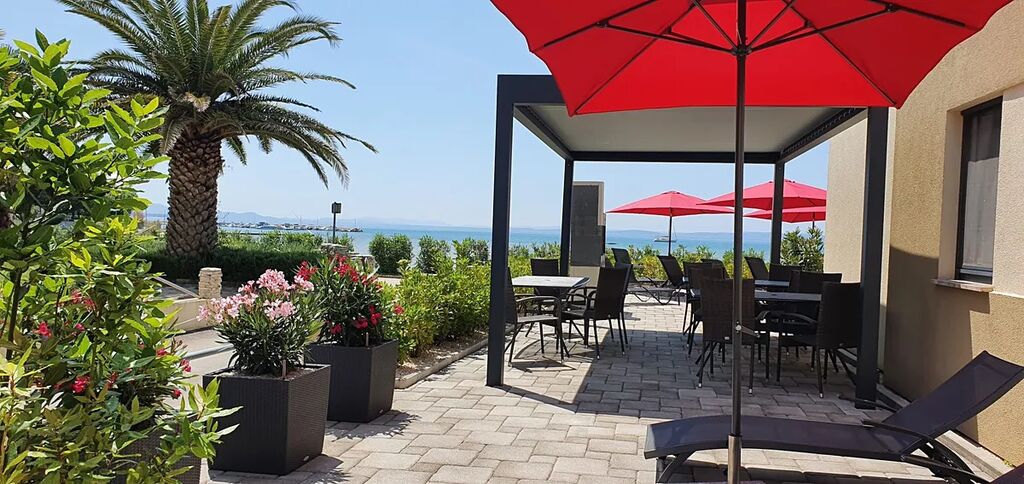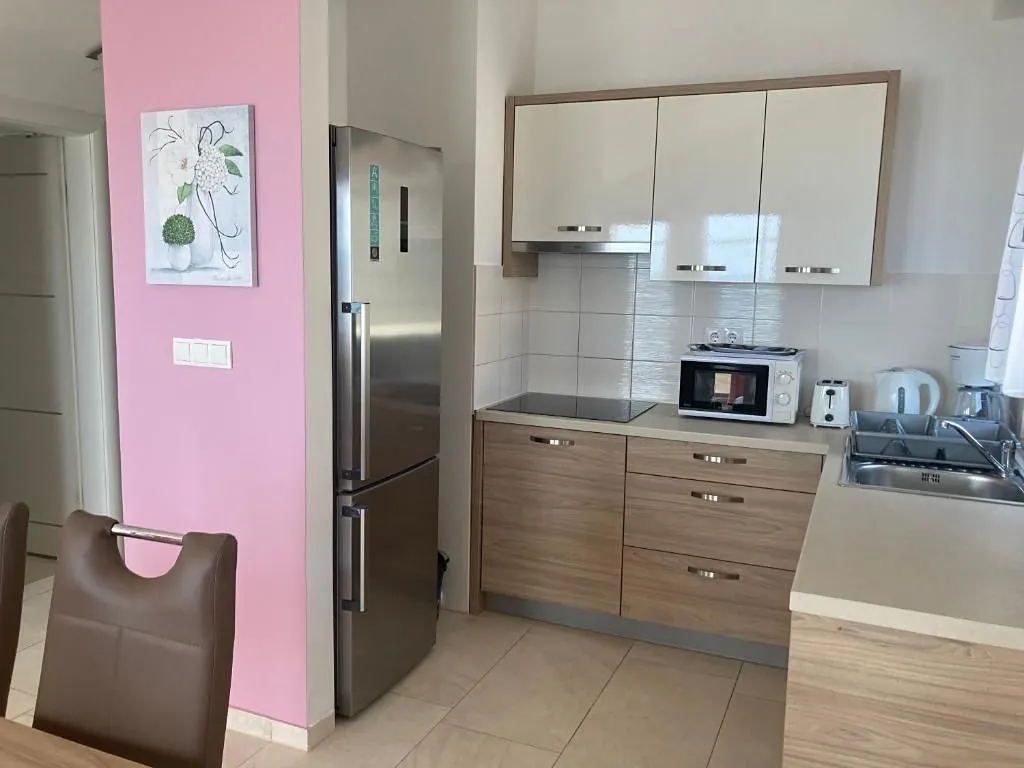 Moře je zde mělké a dno písčité. Pláž v těchto místech je sice betonová, ale hezká a upravená. Krásné písčité pláže jsou vzdálené procházkou podél moře či zkratkou do 10 minut. V blízkosti domu jsou restaurace, pizza bar, bar beach, dětské hřiště, obchůdek apod.