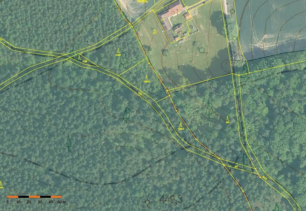 Lesní pozemek p.č. 1045/3 je nepravidelného, úzkého tvaru, nachází se při okraji lesního komplexu.
