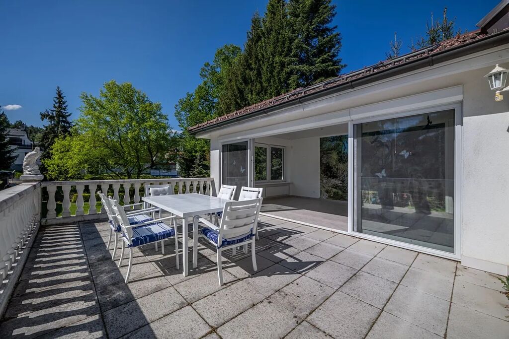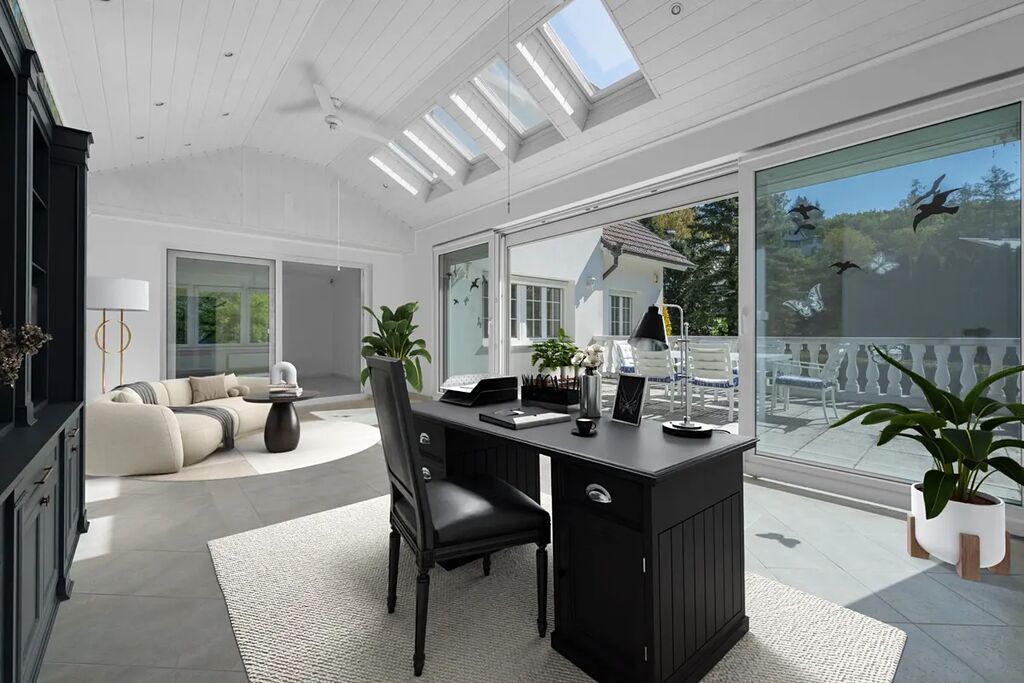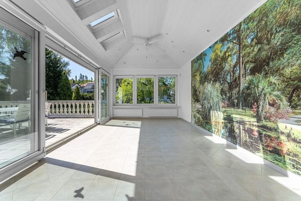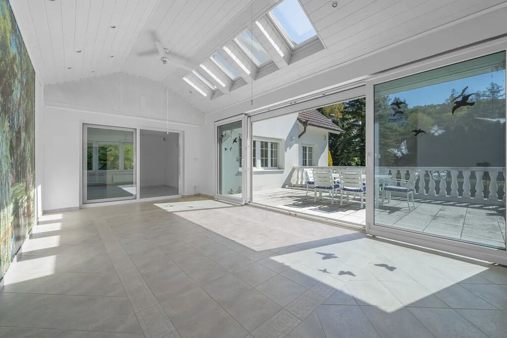 Zimní zahrada s přímým přístupem na terasu rozšiřuje obytný prostor a vytváří příjemné spojení s venkovním prostředím.