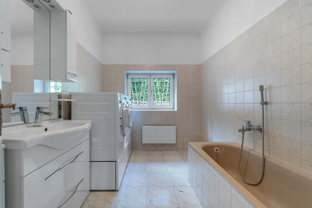 Kuchyň je plně vybavena kvalitními spotřebiči (trouba, sklokeramická deska, digestoř, myčka). Koupelny obsahují vanu, sprchový kout, dvě umyvadla a přípravu na další toalety.