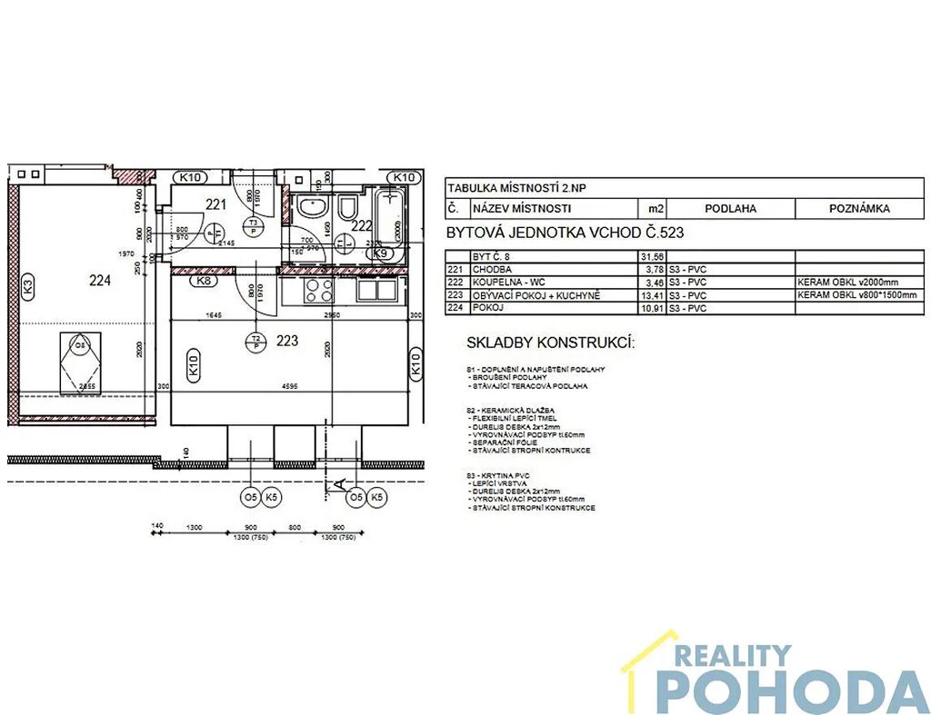 byt 2+kk (č. 4) v 1. NP o velikosti 34,23 m2 - REZERVOVÁNO