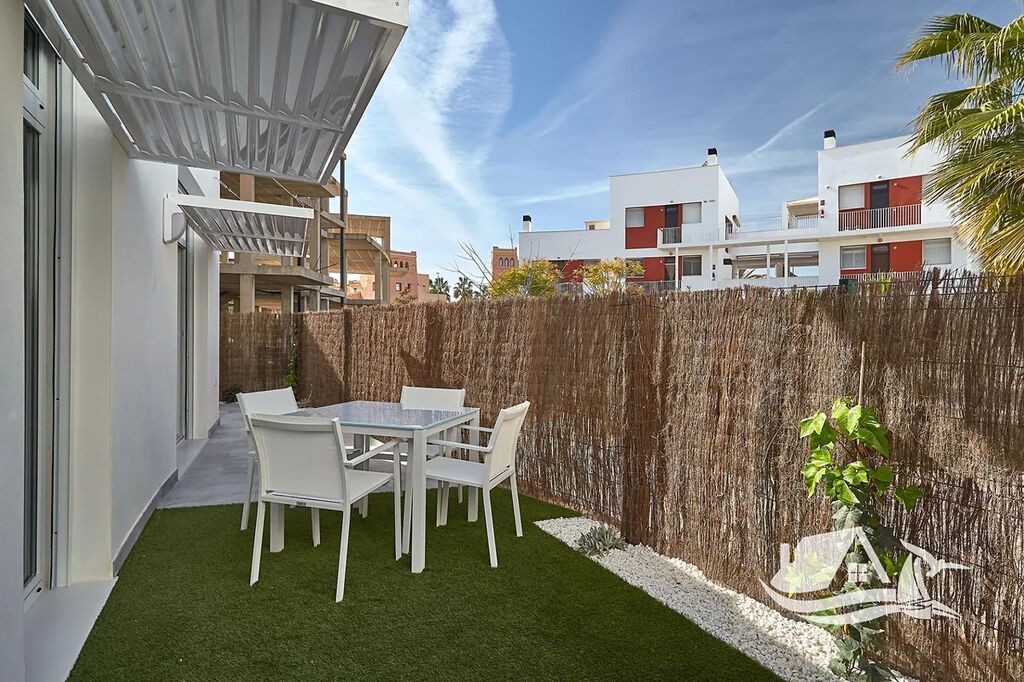Tento prostorný byt o dispozici 4+kk s celkovou plochou 110 m² nabízí svěží, vzdušný interiér s vysokými stropy a přímým vstupem na slunnou terasu o velikosti 19 m². Je ideální pro rodiny, páry i každého, kdo touží po klidném přímořském domově nebo chytré investici v rychle se rozvíjející části Andalusie.