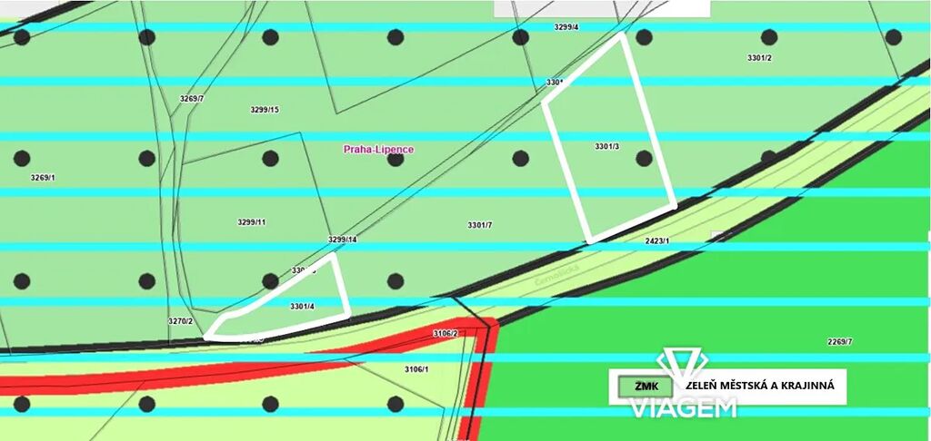 - Parcelní číslo 3301/3 (1518 m², 100% podíl, LV 1647)