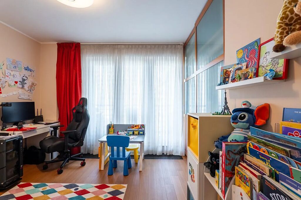 Ve druhé části bytu se nachází 2 samostatné pokoje, z každého je přístup na menší terasu. Větší pokoj má vlastní šatnu a koupelnu.