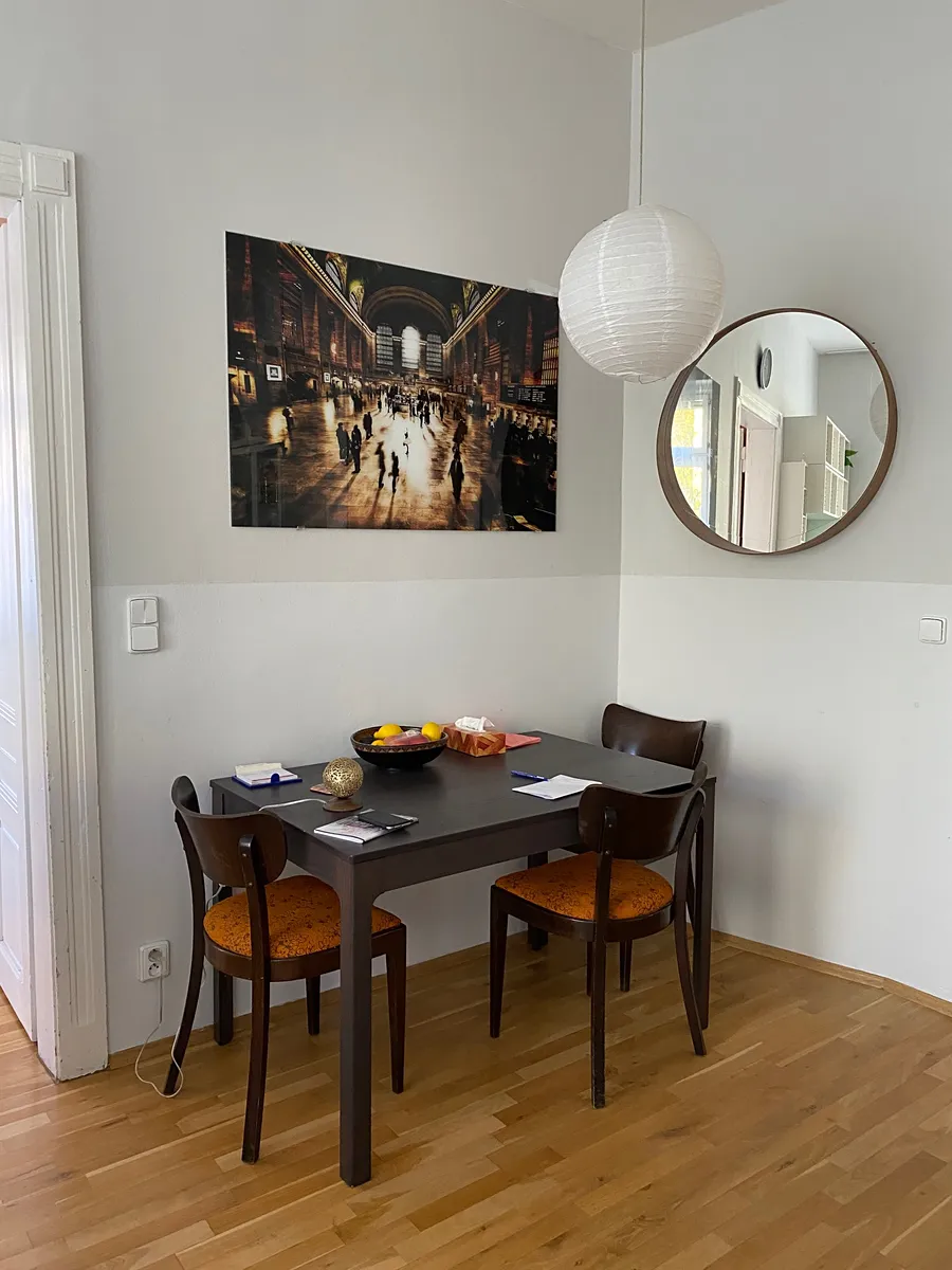 Dlouhodobý pronájem zařízeného bytu 3+kk, 80 m2 ve 2. patře činžovního domu v klidné ulici plné zeleně, 5 min. chůze od metra Anděl.