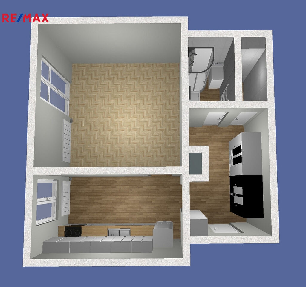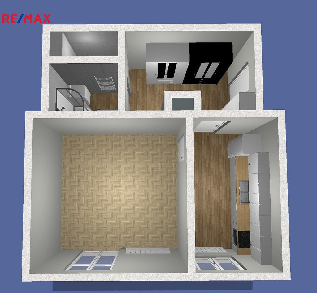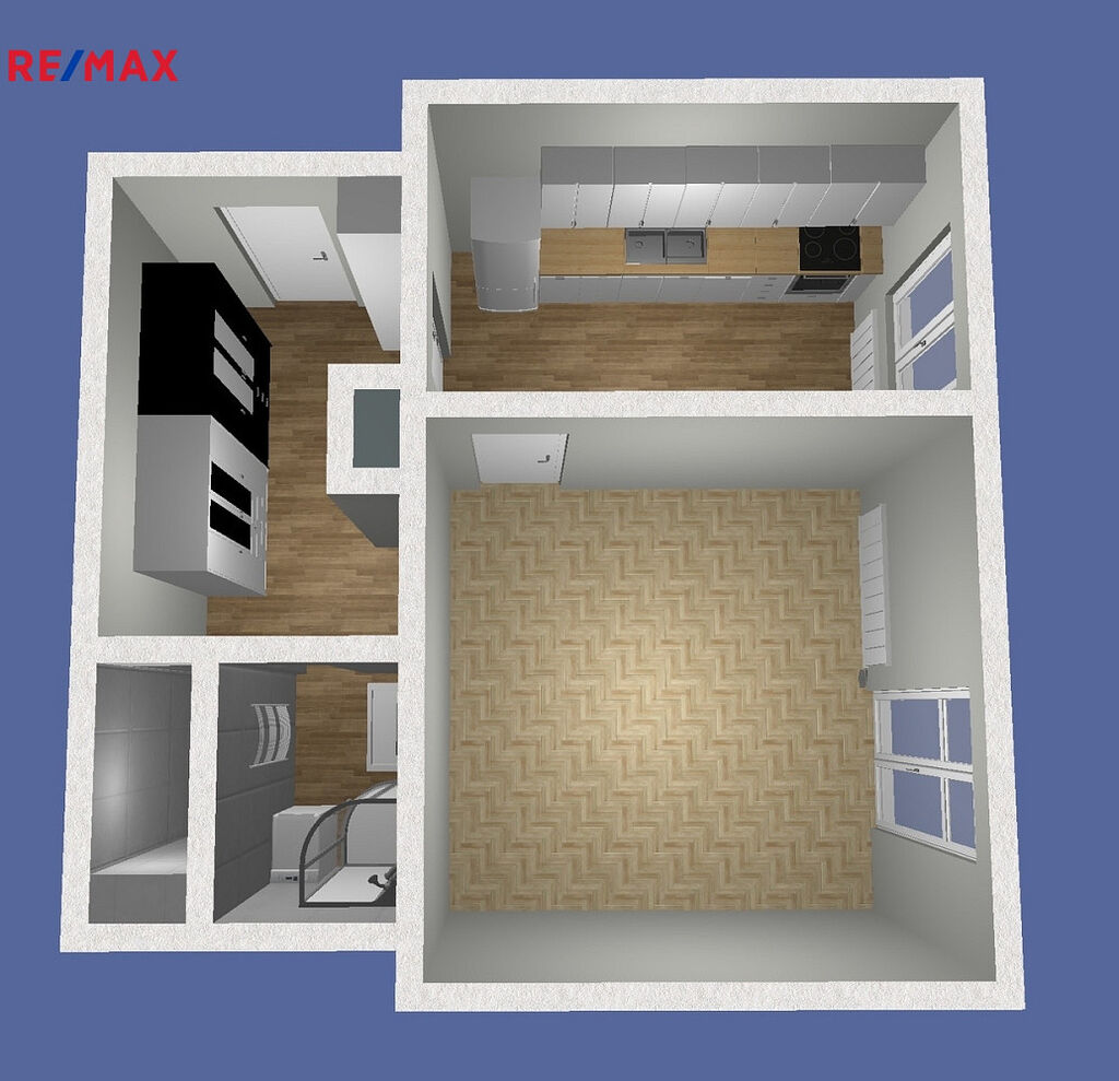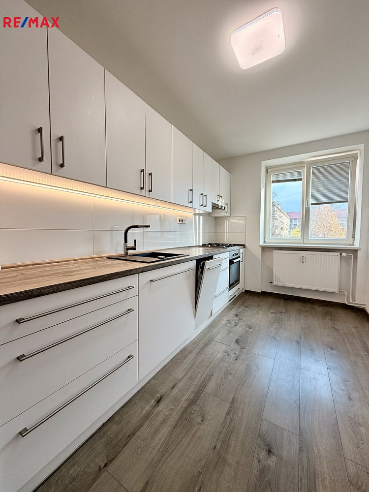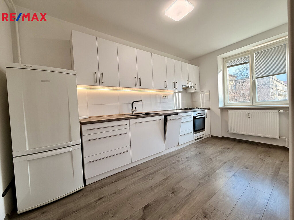 Byt o podlahové ploše 40 m² je situován ve 3. np cihlového domu s výtahem. Dispozice bytu je patrná z půdorysu, nabízíe jej bez vybavení, pouze na chodbě jsou dvě šatní skříně. Byt je po rekonstrukci z roku 2021, je zde nová kuchyňská linka s myčkou a lednicí. V koupelně je sprchový kout a místo na pračku (45cm) s vrchním plněním. V obývacím pokoji je minibalkon o výměře 1 m², v podzemním podlaží pak je sklepní kóje (3m²).