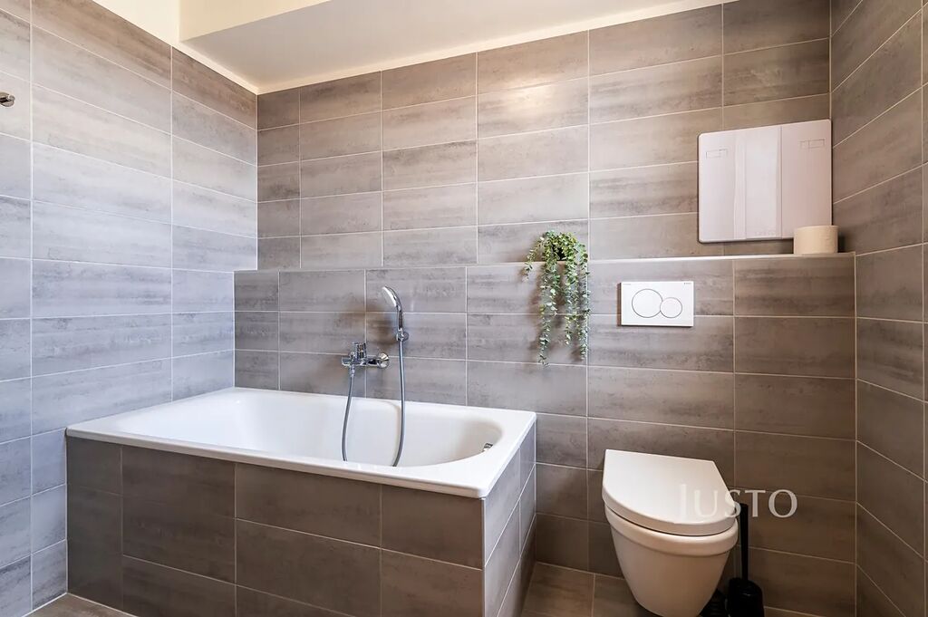 V koupelně je vana.