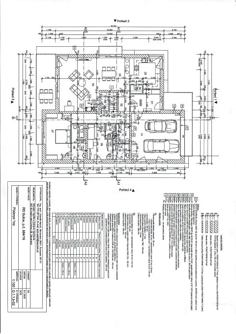 > 1.NP-,předsíň 10,05m, chodba 9,37m, kuchyň/jídelna/obývací pokoj 66,43m, tech.místnost 10,08m, pokoj 34,28m koupelna s WC 12,43m, hostinské WC 1,44m, dvougaráž 39m ..z přízemí vstup na terasu a zahradu.
