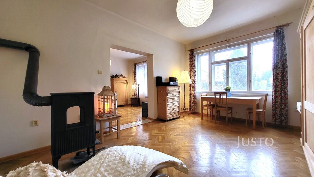 V prvním patře vznikl spojením dvou menších bytů mimořádně prostorný byt 5+kk s balkonem o velikosti 120 m², který zaujme svou vzdušností, dispozičním řešením i příjemnou atmosférou.