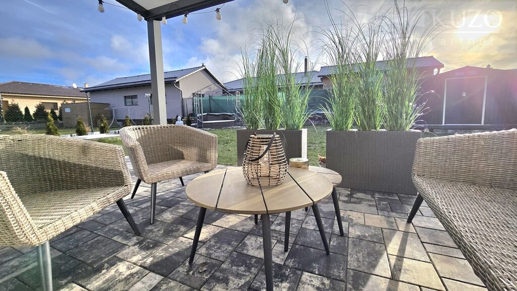 Zahrada je již hotová a plně funkční. V ceně domu získáváte kompletní vybavení pro trávení volného času: