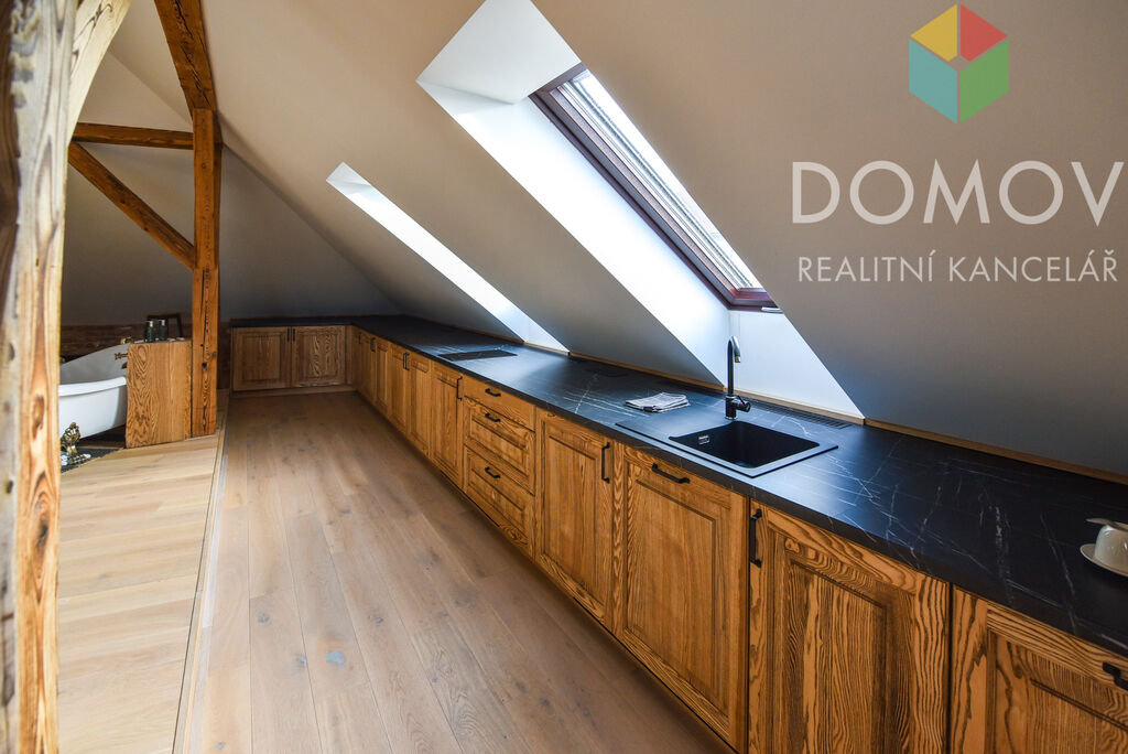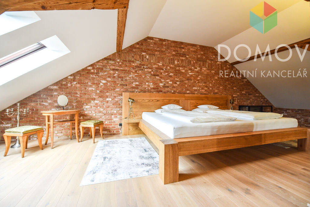 Nabízíme exkluzivně k pronájmu jedinečný, nadstandardně prostorný podkrovní byt o velikosti 200 m², který se nachází ve 2. patře domu v Berouně – Závodí. Byt je řešen jako jedna velkorysá otevřená místnost s designovou volně stojící vanou, toaletou, obrovskou kuchyňskou linkou s indukční varnou deskou, myčkou a lednicí. Součástí prostoru je také pracovní místo s dubovým stolem vhodné jako plnohodnotná kancelář. Byt je kompletně vybaven stylovým nábytkem včetně pohovky, velkou televizí a dalšími detaily, díky kterým je možné okamžité nastěhování bez dalších investic. Po domluvě s majitelem je možné zajistit i pravidelný úklid a výměnu ložního prádla či ručníků.