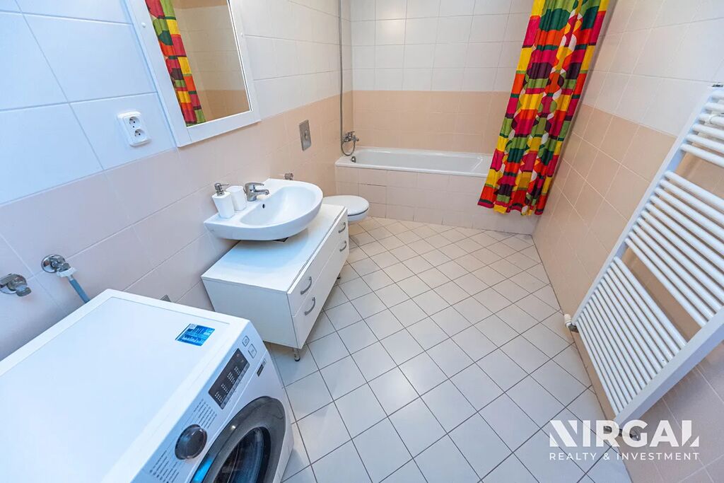 Interiér bytu je mimořádně světlý a vzdušný díky francouzským panoramatickým oknům a orientaci na dvě světové strany. K bytu náleží dva balkony (3 a 7 m²), které poskytují příjemný prostor k posezení. Prostorný obývací pokoj s plně vybavenou kuchyní, široké chodby, samostatné pokoje, komora, dvě koupelny, velká vana, kvalitní nábytek a vestavěné skříně – vše zde vytváří dokonalé podmínky pro pohodlné a elegantní bydlení. Byt je připravený k okamžitému nastěhování.