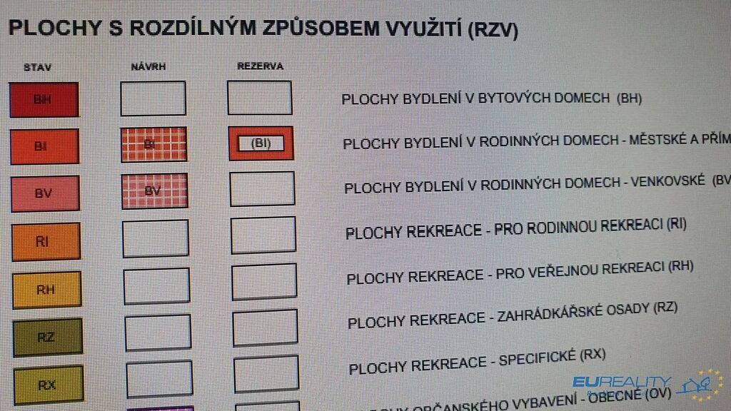 Vedeno v územním plánu jako plochy smíšené s funkcí přírodní a zemědělské (v blízkosti územní plán pro výstavbu RD - BV. (první v pořadí).