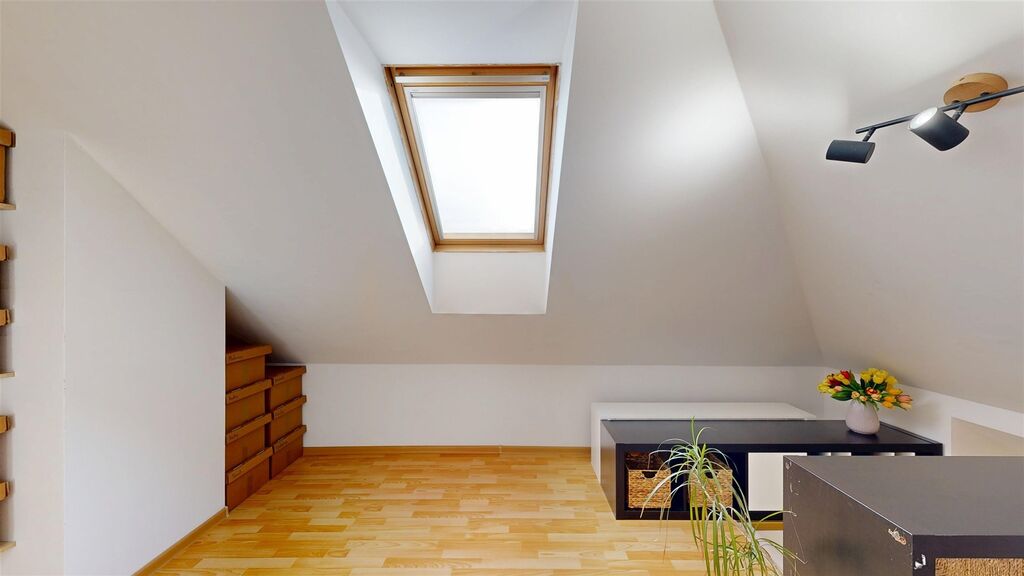 Byt působí vzdušně a nabízí přirozené propojení všech místností. Na hlavní úrovni najdete obývací pokoj s kuchyňským koutem, dva samostatné pokoje, koupelnu s vanou a prostornou vstupní halu s úložnými prostory. V horním patře mezonetu se nachází útulná galerie vhodná jako ložnice či pracovna. Byt je ve výborném technickém stavu, bez nutnosti dalších úprav.