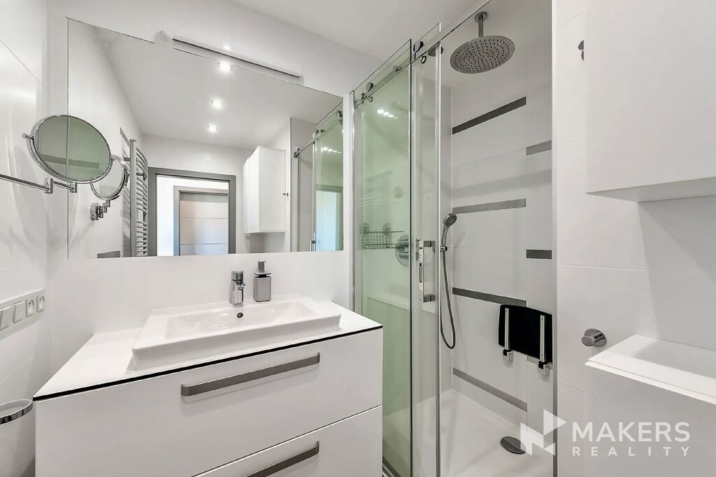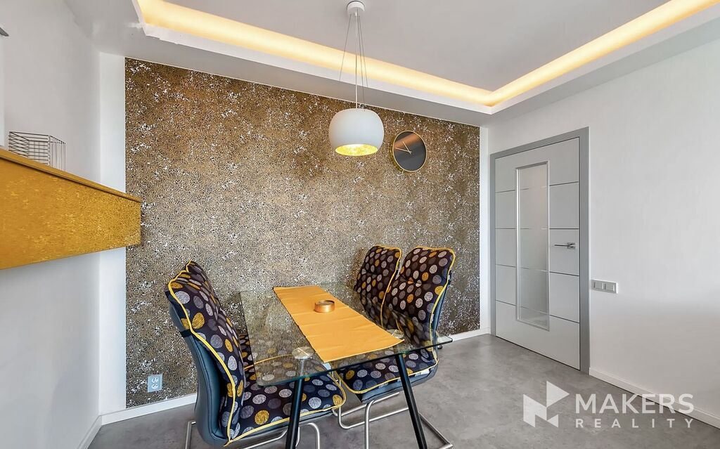 Byt vyniká nadstandardním provedením a prémiovými materiály – odhlučněné dveře Sapeli, sanitární vybavení Villeroy & Boch, klimatizace, podlahové vytápění v koupelně, klimatizační jednotka a radiátory s chytrým dálkovým ovládáním přes aplikaci.