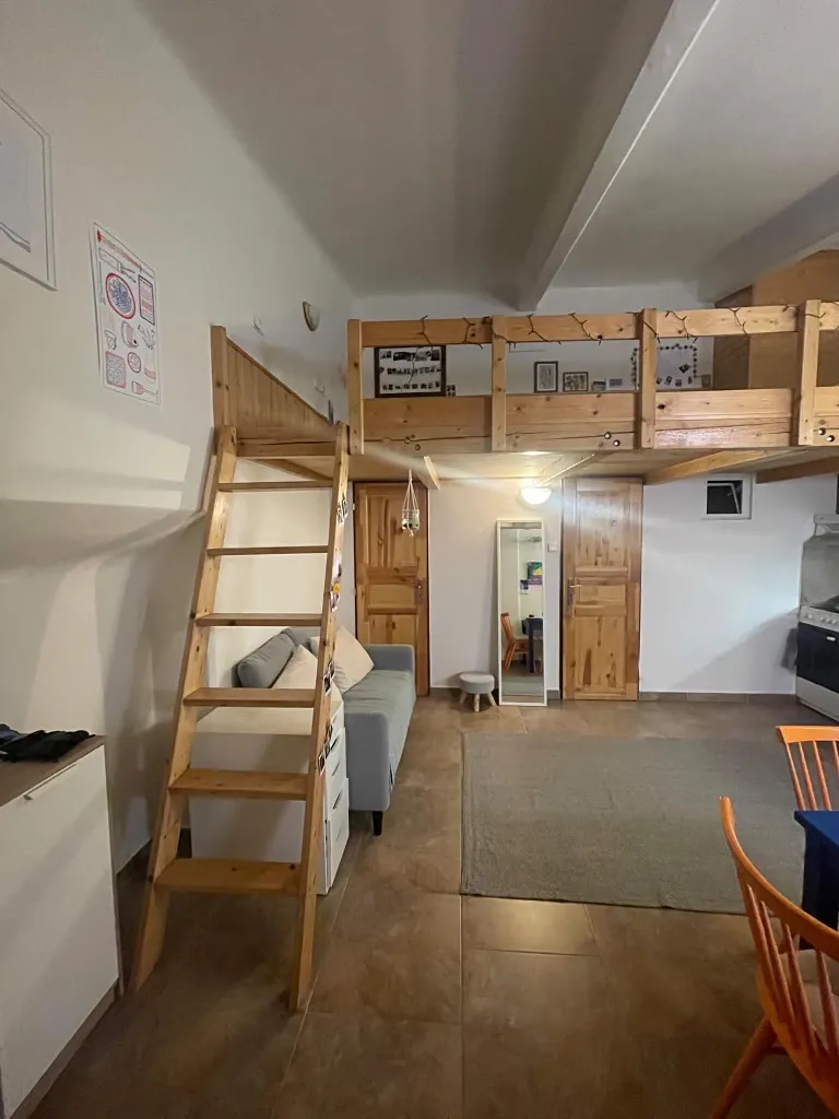 Nabízím k pronájmu byt orientovaný do vnitrobloku o dispozici 1+1 o celkové ploše 35m2 plus spací pochozí patro v cihlovém činžovním domě na adrese Vrchlického 47/36, Praha 5 - Košíře.