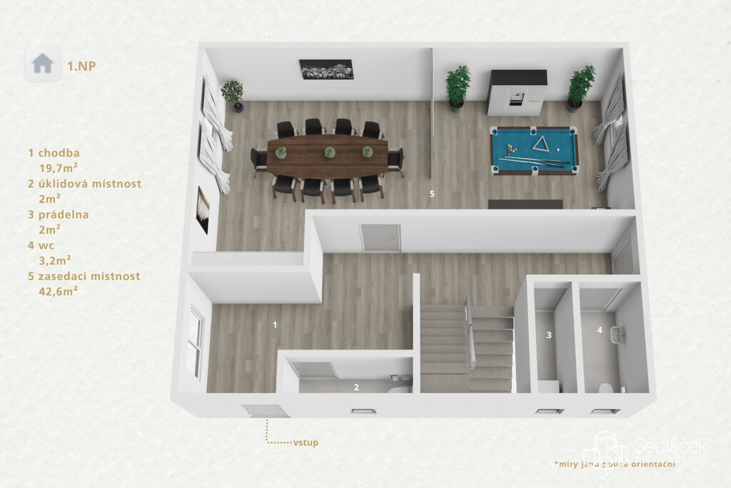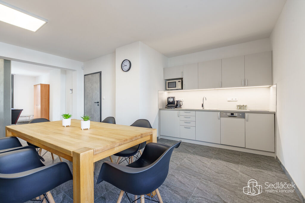 Kancelářské patro připravené na jakoukoli agendu. Meetingy, porady, účetní, poradenství… Kuchyňka + sociální zázemí samozřejmostí.