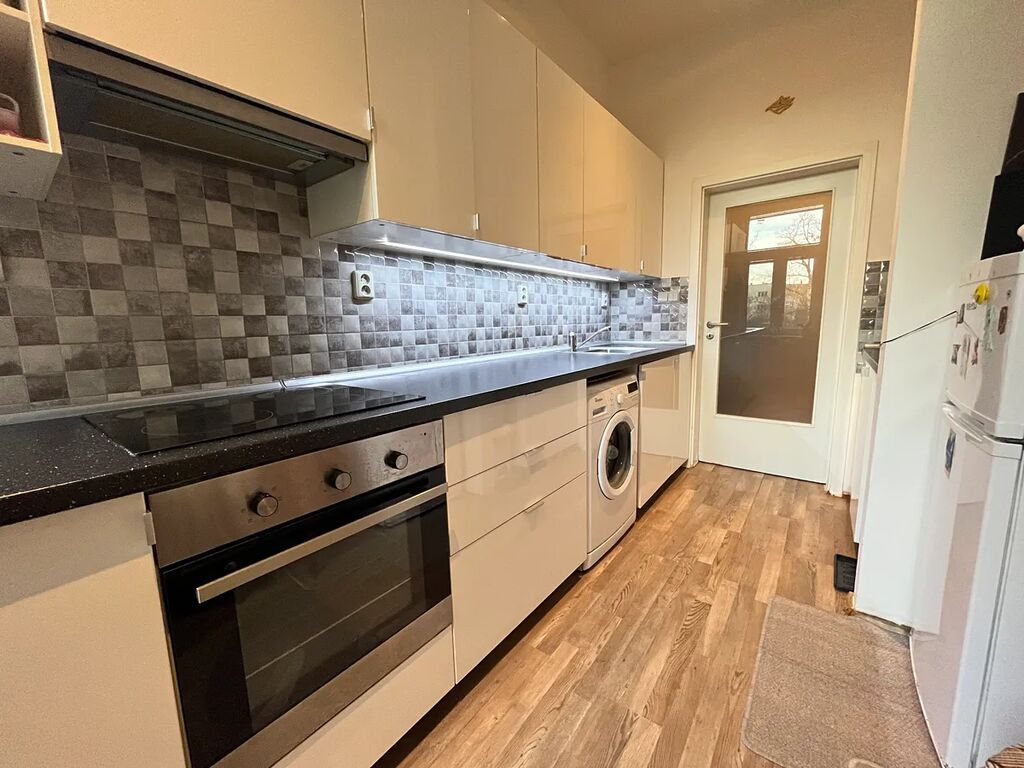 Byt prošel rekonstrukcí kuchyně, koupelny, elektroinstalace, vody a způsobu vytápění a působí velmi příjemným a vzdušným dojmem. Hlavní pokoj nabízí dostatek prostoru pro vytvoření samostatné spací i obývací zóny. Kuchyň je vybavena novou kuchyňskou linkou s dostatkem úložných ploch i prostorem na jídelní stůl.
