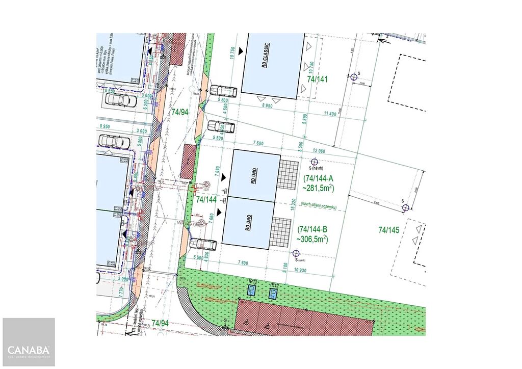 K patě pozemku budou přivedeny tyto inženýrské sítě: rozvody NN a splašková kanalizace.