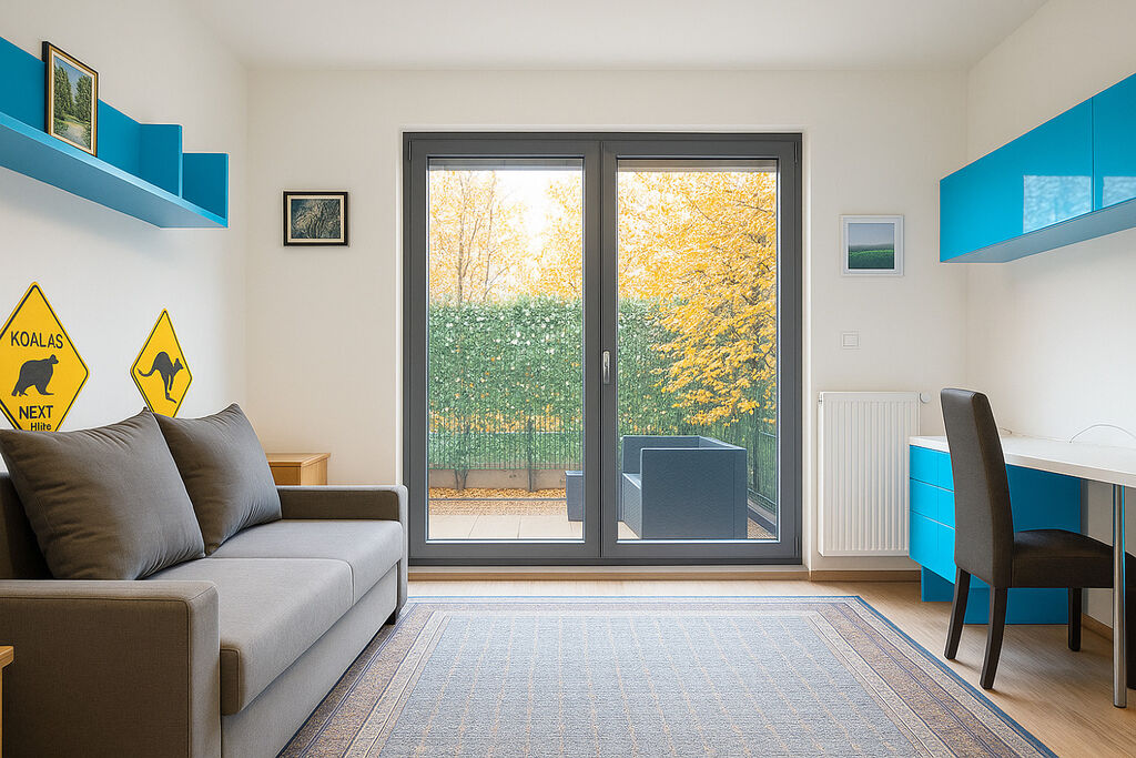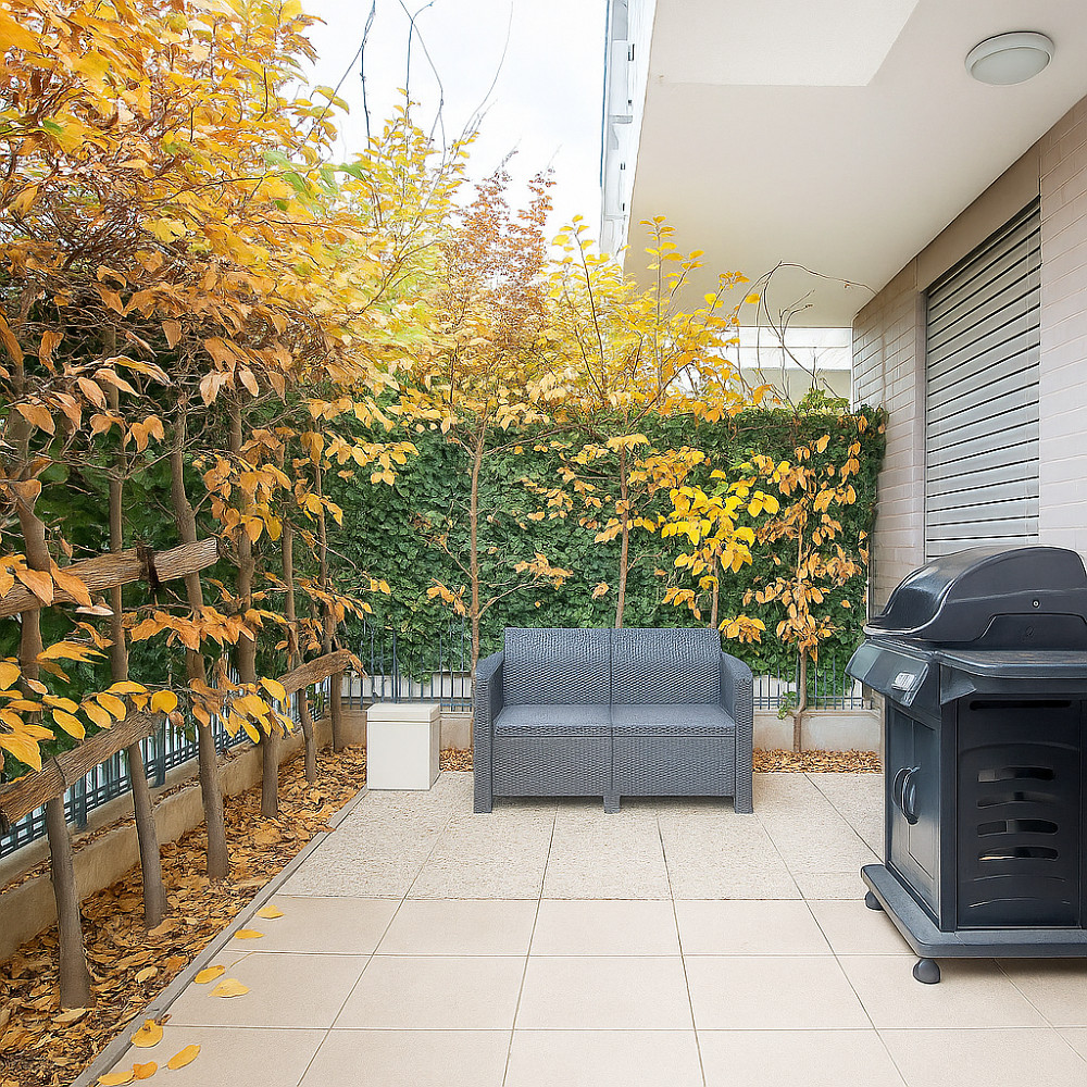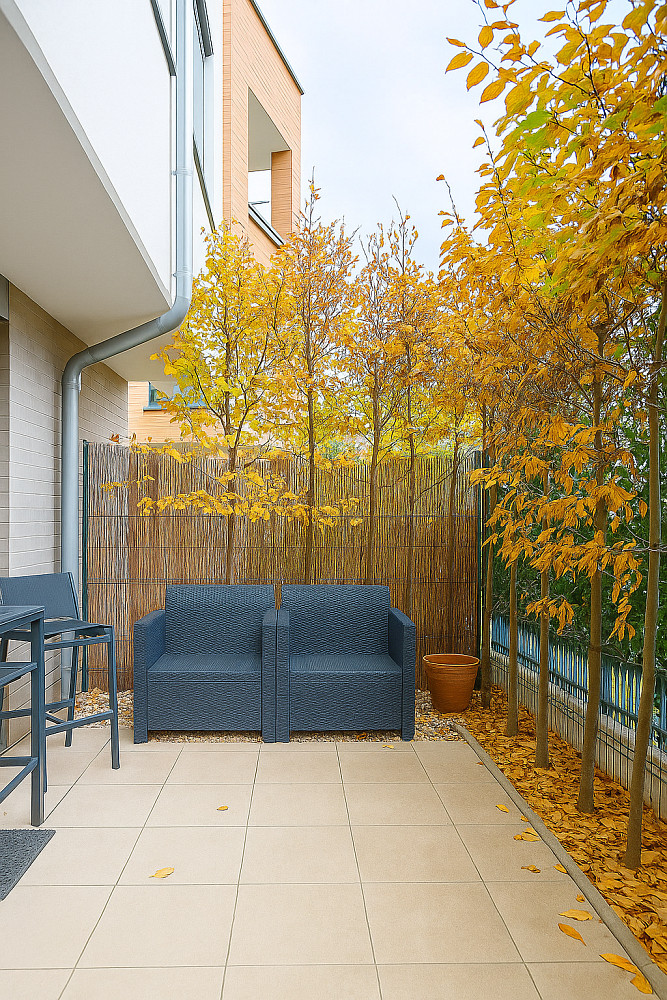 Byt disponuje dvěma zahradami, které poskytují skvělé místo pro dětské hry, rodinné grilování nebo relaxaci po náročných dnech. Zimní zahrada se stane oblíbeným místem pro odpočinek v každém ročním období. Byt má dvě ložnice, ideální pro rodiče a děti, prostorný obývací pokoj spojený s moderní kuchyňskou linkou, koupelnou se záchodem, samostatným WC a praktickou komorou na uložení všech potřebných věcí, jako je i pračka se sušičkou.