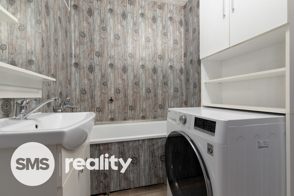 Koupelna je řešena v původním umakartovém jádru – ideální příležitost pro modernizaci podle vlastního stylu. Ložnice a dva pokoje navazují na chodbu, kde je také umístěna prostorná komora. K bytu náleží také sklepní kóje.