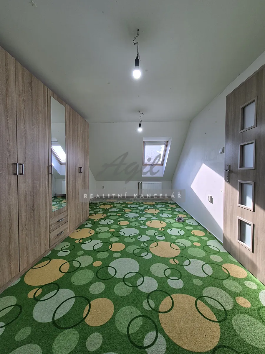 Šatna 4 m2, dětský pokoj 18 m2, ložnice 16 m2.