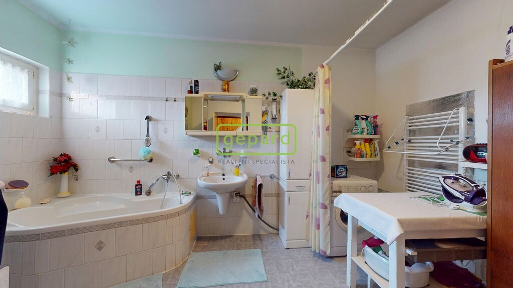 Jedná se o řadový rodinný dům o velikosti cca 150 m2 na pozemku o celkové ploše 361 m2. V přízemí domu projdeme od vstupních dveří chodbou do obývacího pokoje a z něho dále do kuchyně, ze které je vstup plastovými dveřmi na zahradu. S chodby jsou postupně vstupy do menší koupelny s WC, do komory ve které se nachází plynový kotel, který je rok starý a dále přímo s chodby je průchod do garáže, což oceníte hlavně při sychravém počasí. Po krásných dřevěných schodech se dostaneme do prvního patra, kde se nachází proti schodům dva prostorné pokoje, každý se vstupem do lodžie, dále projdeme chodbou do třetího pokoje s okny do ulice. V patře je též samostatné WC a veliká koupelna s rohovou vanou.