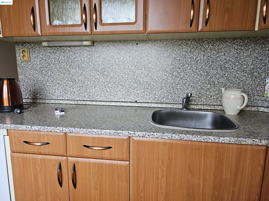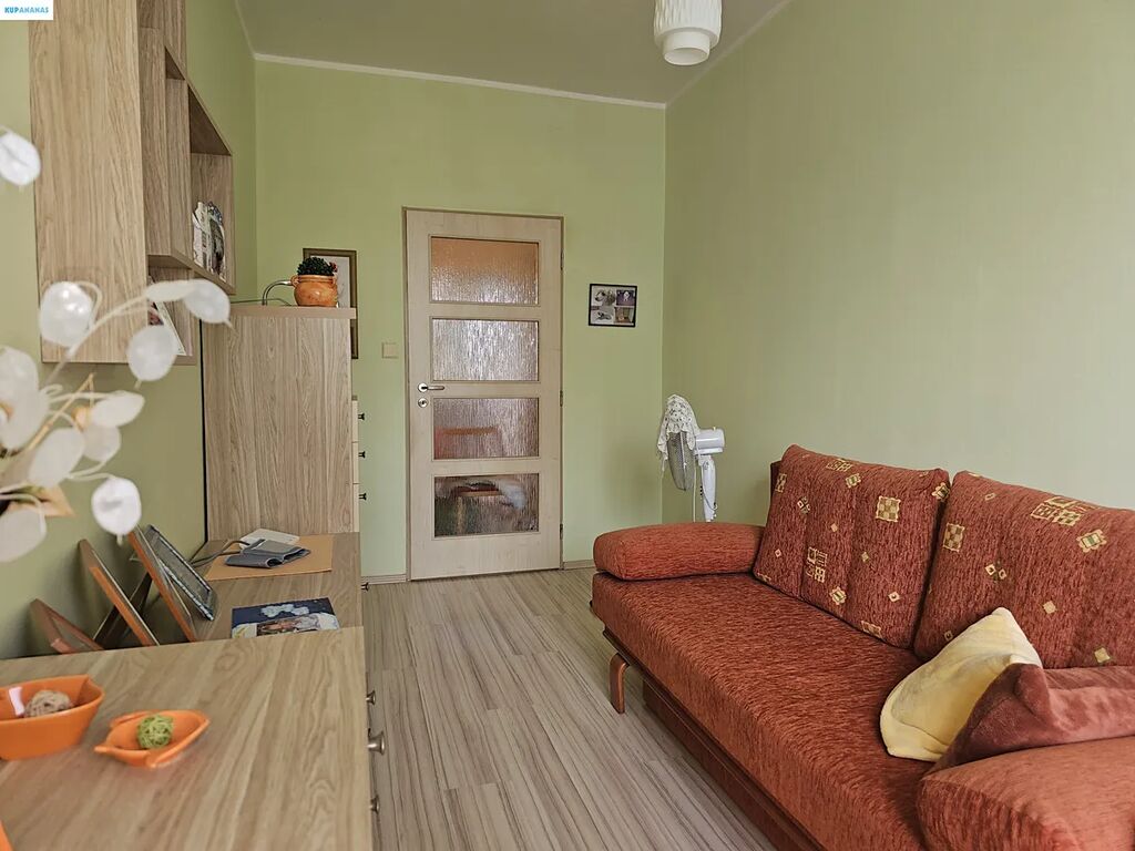 Tento byt, situovaný v pátém patře osmipatrového domu, nabízí příjemné a prosvětlené prostory. Oceníte především balkon, který je ideální pro ranní kávu nebo večerní relaxaci. Ačkoliv koupelnové jádro je původní a obložené klasickými dlaždicemi, působí udržovaným dojmem a nabízí prostor pro případnou modernizaci dle vašeho vkusu. V celém bytě jsou položeny plovoucí podlahy, které doplňují designové dveře napodobující dřevo, dodávající interiéru soudržný vzhled. Pouze v obývacím pokoji a v ložnici najdete útulný a udržovaný koberec.