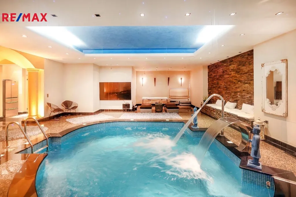 • Vnitřní vyhřívaný bazén 21 m², doplněný saunou, hammamem a plně vybaveným fitness – soukromé lázně pod jednou střechou.