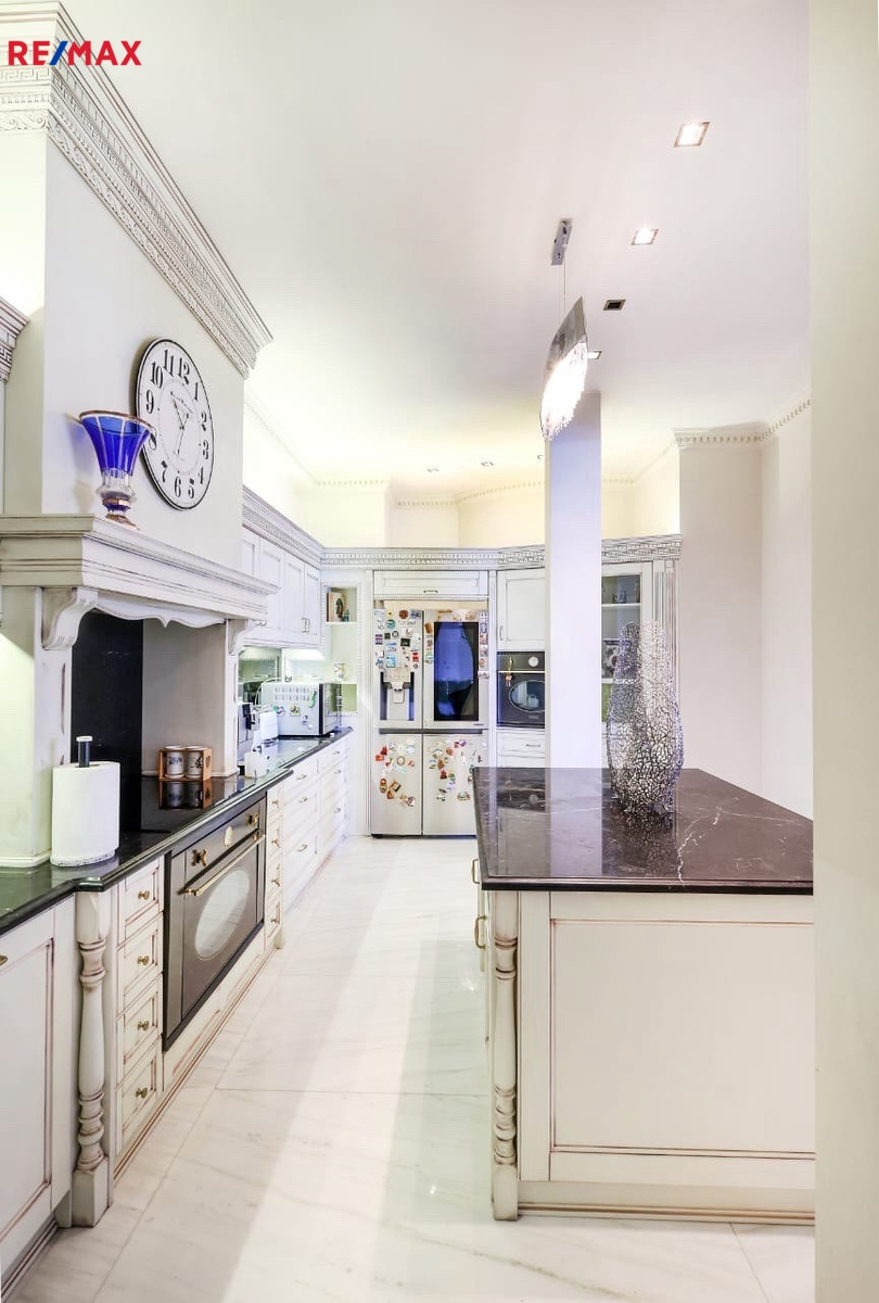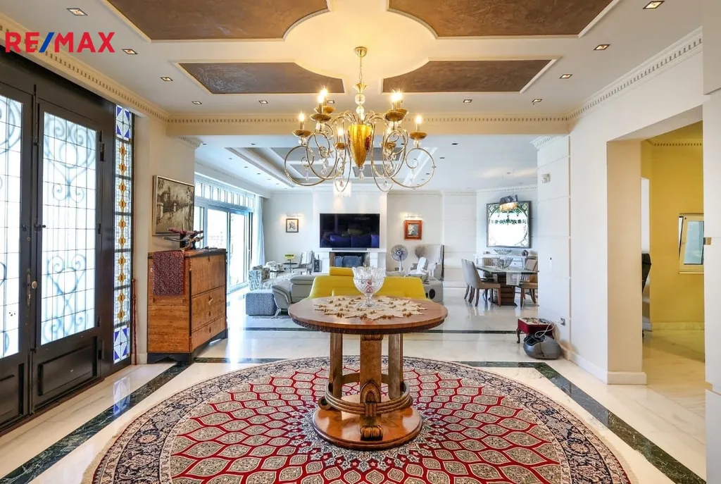 Kombinace ručně opracovaného dubu a ořechu, širokých balkonů s panoramatickým výhledem na Athény, Pireus i horu Parnitha dodává prostoru atmosféru šlechtické elegance.