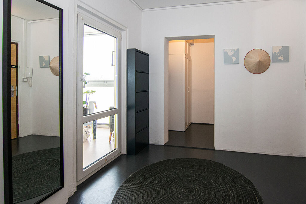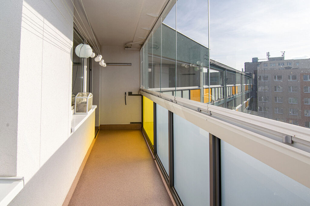 Před pěti lety prošel byt zdařilou rekonstrukcí. Byla odstraněna příčka mezi kuchyní a obývacím pokojem, čímž vznikl otevřený a prosvětlený obytný prostor o velikosti 31 m² se vstupem na druhou, prostornou zasklenou lodžii orientovanou do klidného okolí s výhledem na sportoviště a dětská hřiště.